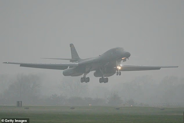 Three US Air Force B-1 Lancer bombers touched down at RAF Fairford in Gloucestershire today, as Washington prepares what Donald Trump has described as ‘the big one’ against Iran.