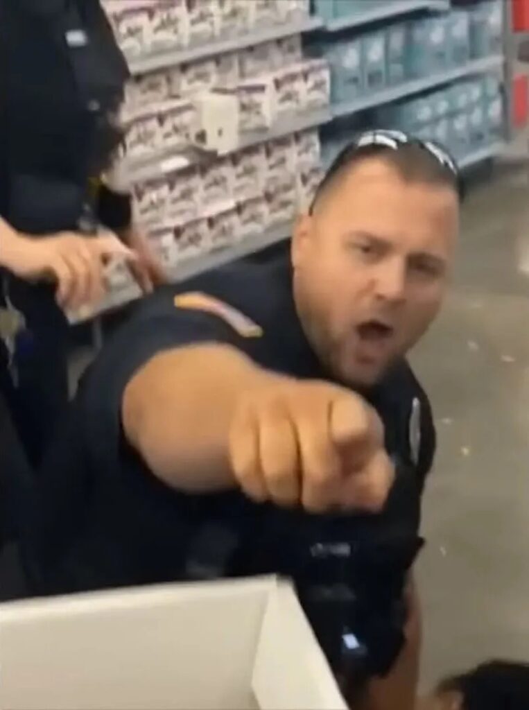 In the body camera footage, Spain can be seen apparently approaching Edmonds and immediately trying to place her in handcuffs as she argued with another customer.