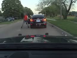After speaking with the person briefly, the suspect can be seen pulling a handgun from his belt and firing a shot at the person. The suspect then walked back to his car and drove