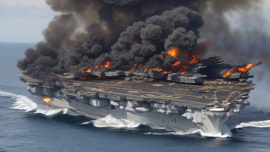 Flooding began in multiple compartments. Internal bulkheads sealed automatically, but the damage had compromised critical systems. Electrical power flickered. Smoke filled passageways deep inside the hull. Despite the carrier’s immense size and layered defenses, the concentrated strike had achieved what once seemed unthinkable.