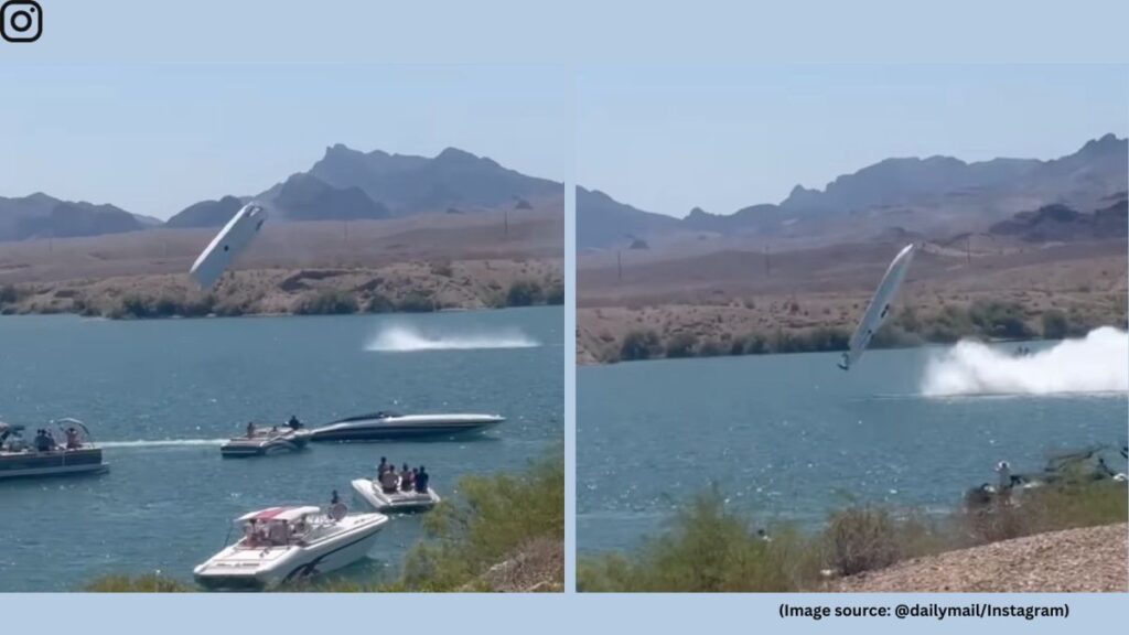 viral video shows the Freedom One Racing boat, a powerful twin-hull Skater model, taking off the surface, twisting mid-air, and somersaulting before slamming down. The chilling moment was captured by the audience. A voice in the video can be heard shouting, “No, no, no! Oh my God. Oh my God,” while others scream in the background as the crash occurs.