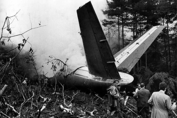 The aircraft crashed into a wooded hillside 11.5 km north of runway 35. While all 95 people aboard survived the impact, 12 passengers died in the ensuing fire. The aircraft was destroyed.
