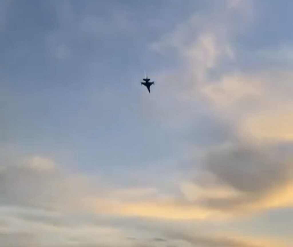 The F-16 was flying at max power with the afterburner lit, maneuvering to complete the figure. The video doesn’t appear to show an ejection.