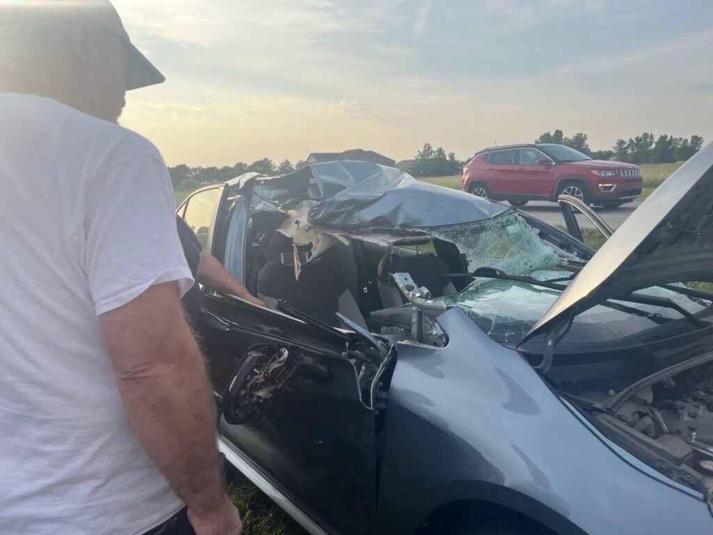 Rodriguez’s car is totaled.