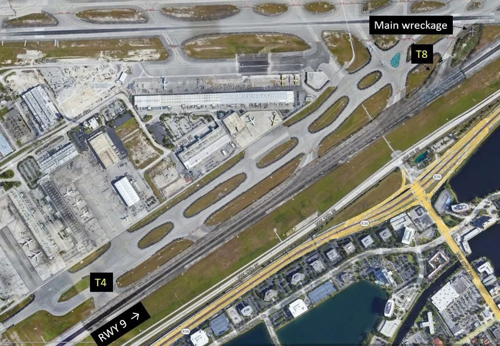 MIA is located about 8 miles northwest of Miami, Florida. Runway 9/27 was constructed of grooved asphalt and was 13,016 ft long and 150 ft wide. The landing distance available was 11,397 ft.