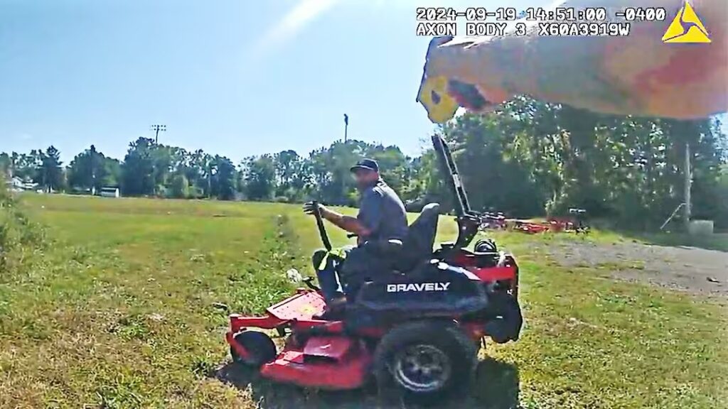Jackson, Michigan — On September 19, 2024, Deputy Robert Henderson arrived at a home in Leoni Township to arrest 41-year-old James Mitchell Kerr, on a felony warrant for violating probation and two misdemeanor warrants. Kerr was on a riding lawnmower when Deputy Henderson started speaking with him. Kerr ignored Deputy Robert Henderson’s commands to stop, accelerating his mower before coming to a ditch. The situation escalated when Kerr retrieved a handgun hidden on the mower, prompting the deputy to deploy a Taser.