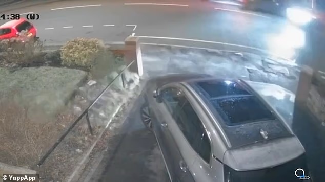 Distressing CCTV captured at a nearby property appears to show the Seat travelling at high speed on the wrong side of the 30mph road.