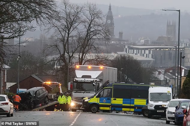 Speaking from the collision site on Sunday afternoon Chief Inspector Helen McCormack, of Greater Manchester Police, said emergency crews were faced with a ‘challenging scene.’