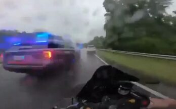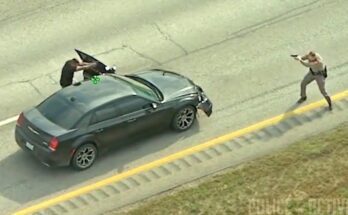 Gunman standing in busy road and waving weapon around is taken out by police car Read More